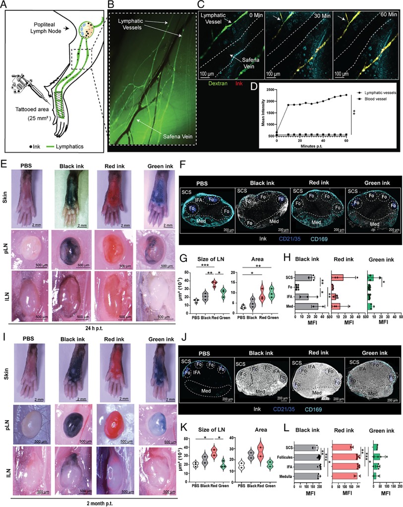 Tattoo ink induces inflammation in the draining lymph node and alters the immune response to vaccination