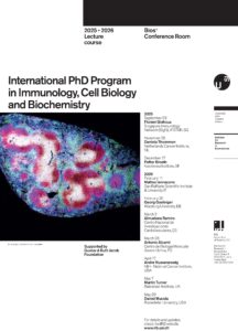 An International Lecture Course is organised every year as part of the IRB International PhD Program in Immunology, Cell Biology and Biochemistry. Lectures are given by visiting experts of international reputation. Currently the IRB counts over 35 PhD students, and since the beginning of the program over 120 PhD theses were successfully defended. At present, the PhD program coordinator is Silvia Monticelli.